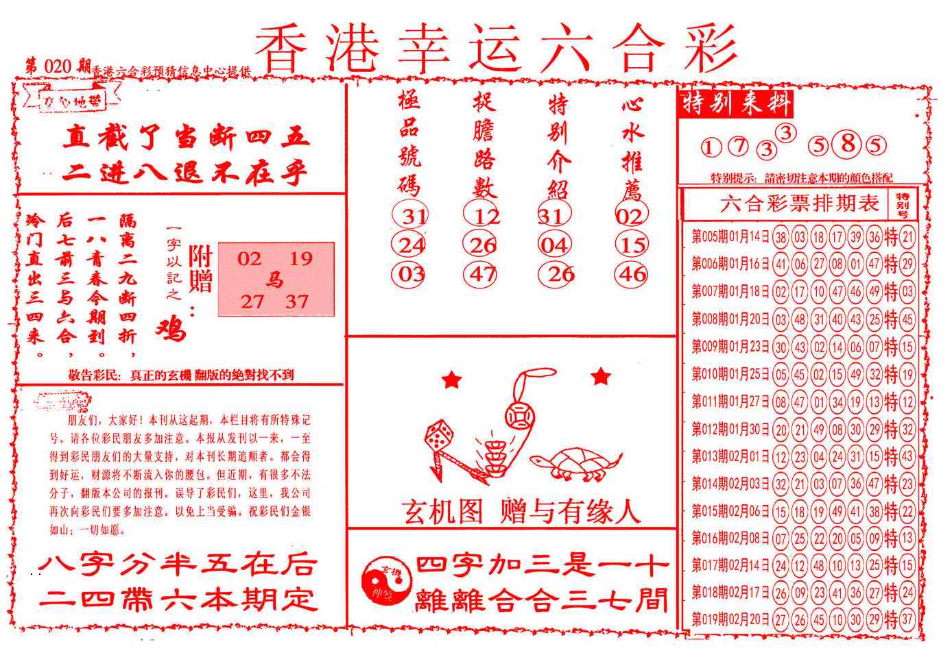 020期幸运六合彩(信封)[图]
