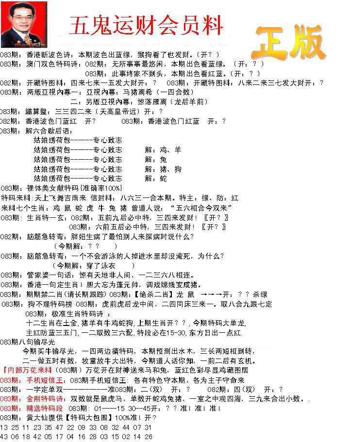 083期正版五鬼运财会员料[图]