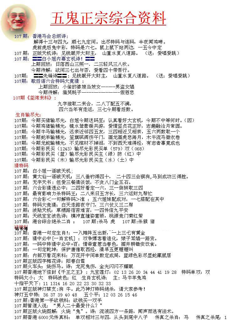 107期五鬼正宗会员综合资料A[图]