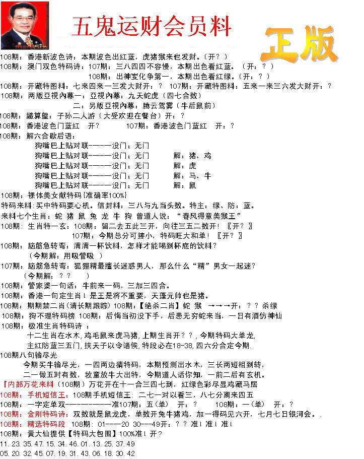 108期正版五鬼运财会员料[图]