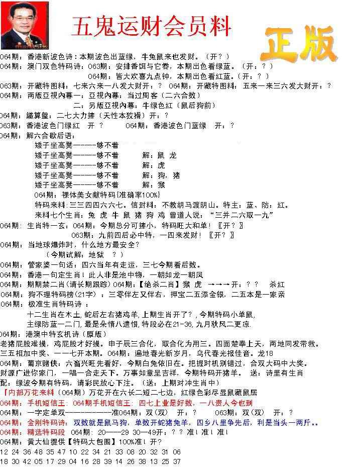 064期正版五鬼运财会员料[图]