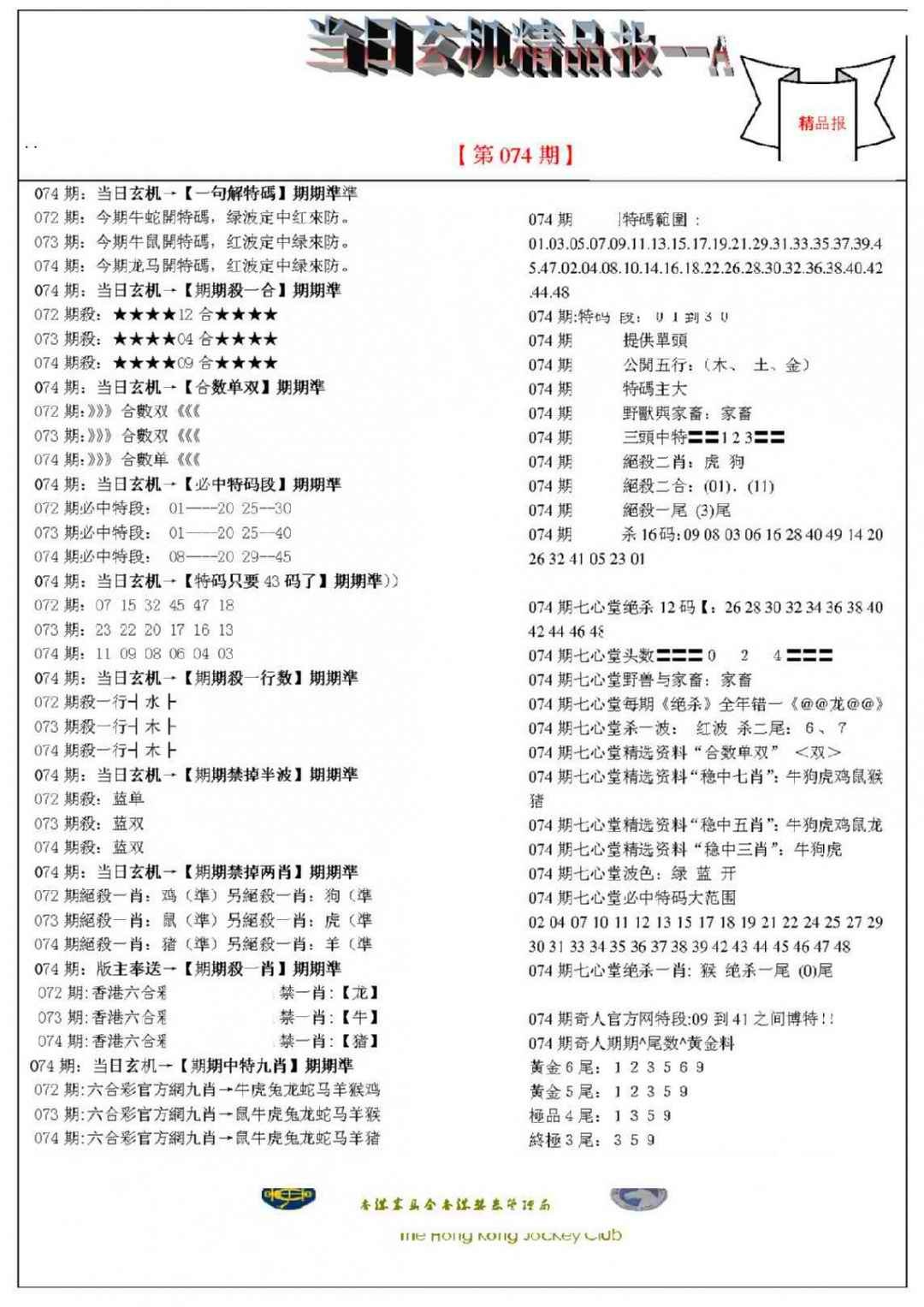 074期当日玄机精品报A[图]