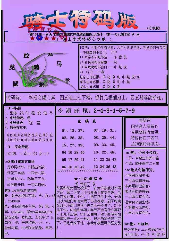 101期另骑士特码版[图]