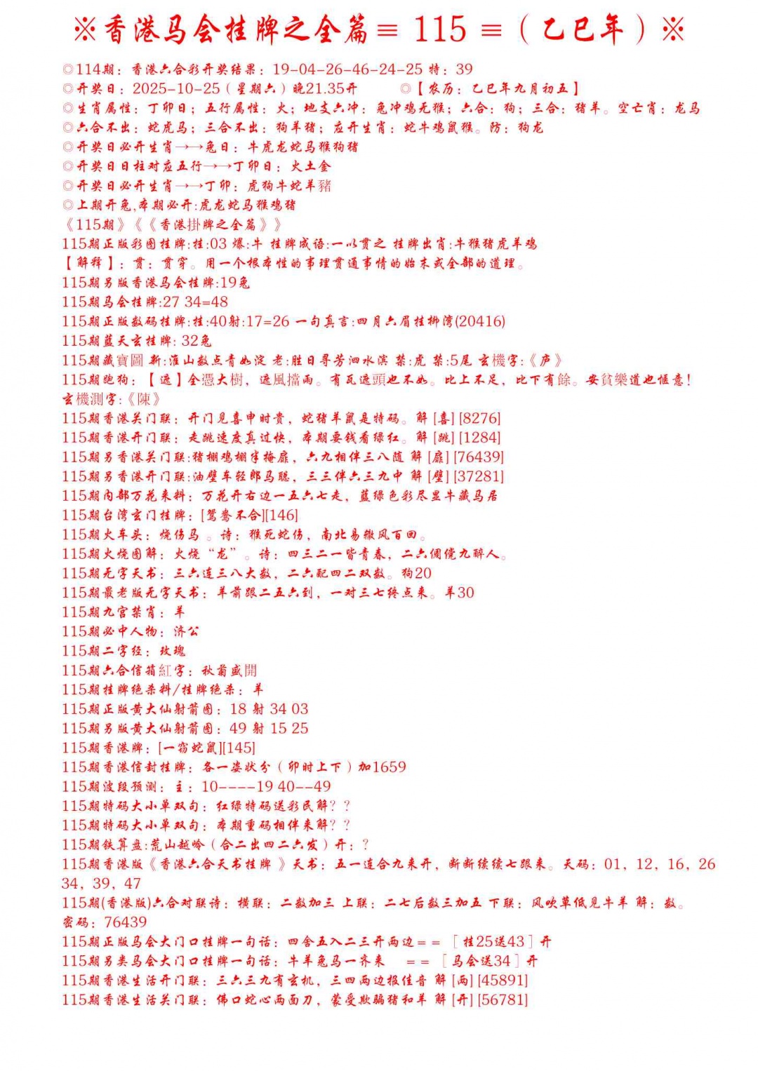 115期手写马会挂牌[图]